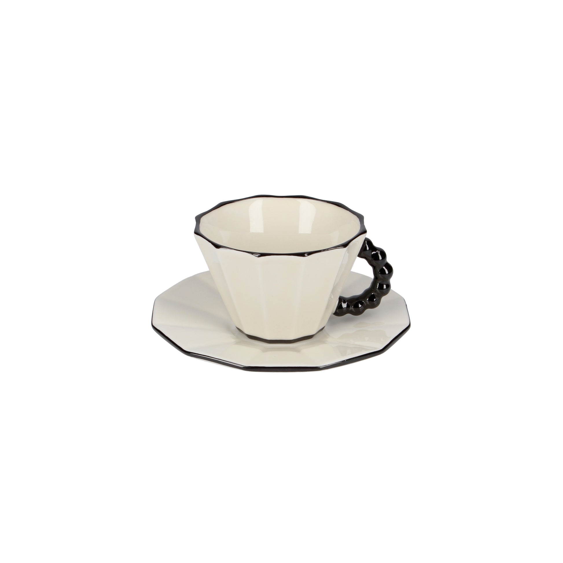 Kubistický espresso šálek a podšálek s černou linkou od Pavla Janáka